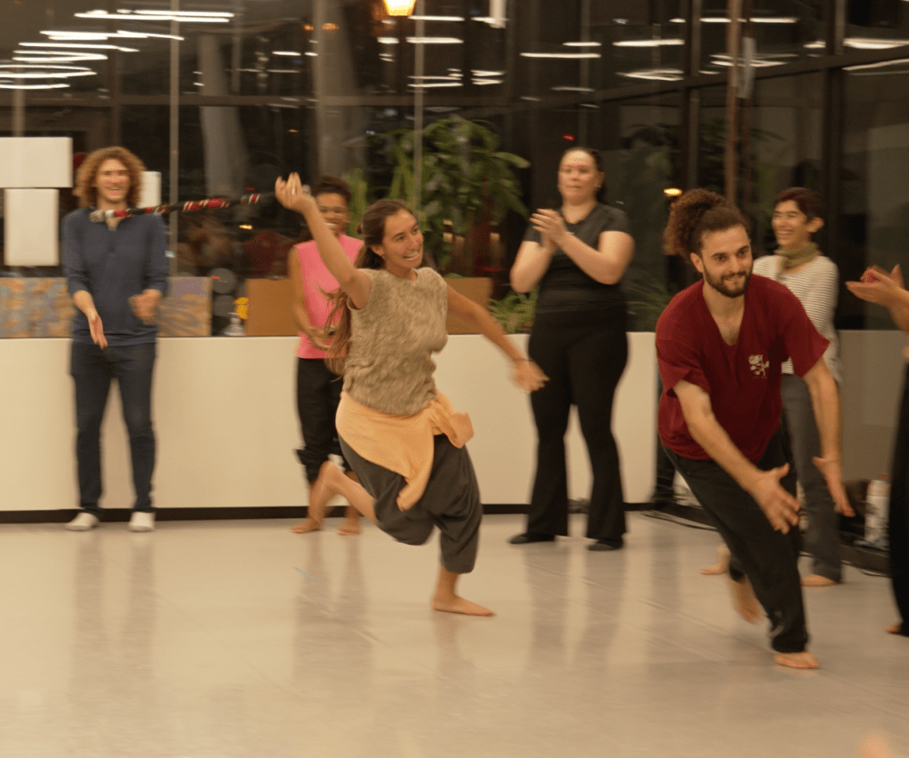 Community Dabke workshop is open to all levels, welcoming participants to experience Palestinian folk dance through communal footwork and specific rhythmic steps. Come experience the collective joy of this form while also learning about and embodying the global momentum of Palestinian life force.